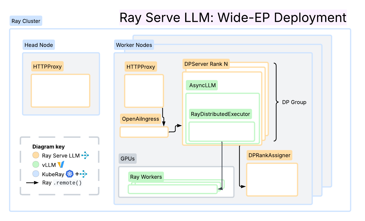 For further reference, we recommend these excellent writeups by the llm-d, PyTorch, Dynamo, and Anyscale teams on large scale serving, disaggregated serving, distributed inference, and wide-EP using vLLM.